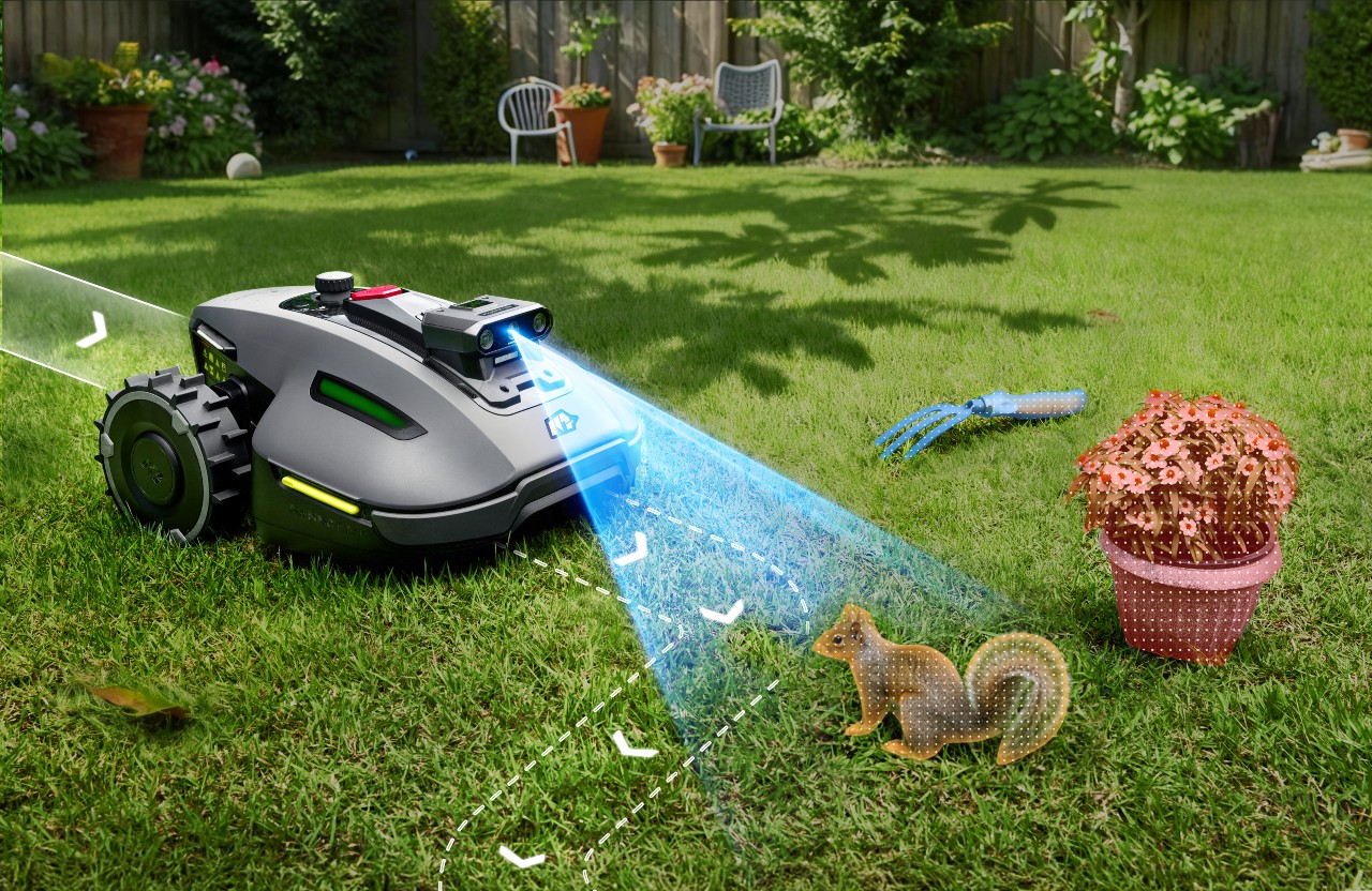 AI-Vision-versionen är extra trygg runt hinder och kanter. Den har trippelkamera med AI-Vision för skarp avläsning även när det händer mycket i trädgården, och ett uppgraderat AI-chip (10 TOPS) som reagerar snabbt för säkrare navigering kring barn, husdjur och möbler.